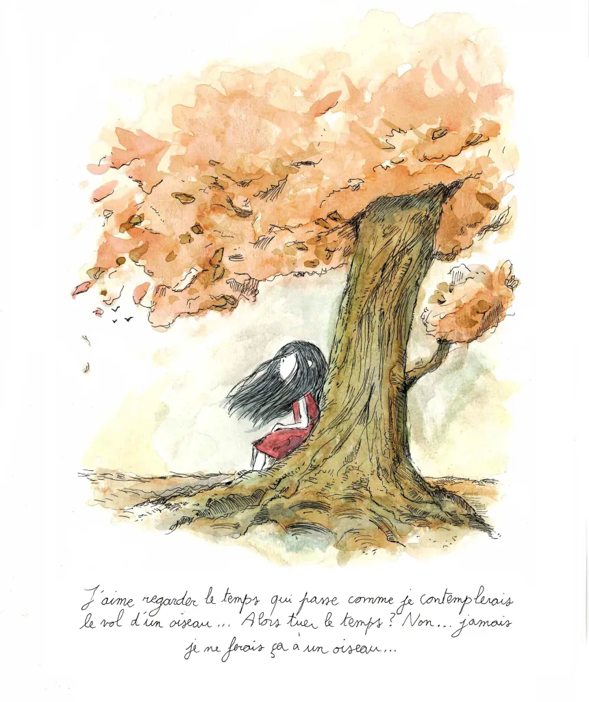 Page après page, dans deux tomes déjà, cette petite fille dévoile peu à peu sa sagesse candide qui vise à gagner ses ailes. Calme, introvertie, rêveuse, elle ne désire pas grand-chose car elle n’aime pas batailler, mais elle veut vivre en paix et avoir le droit d’être qui elle est, sans fureur ni tapage.